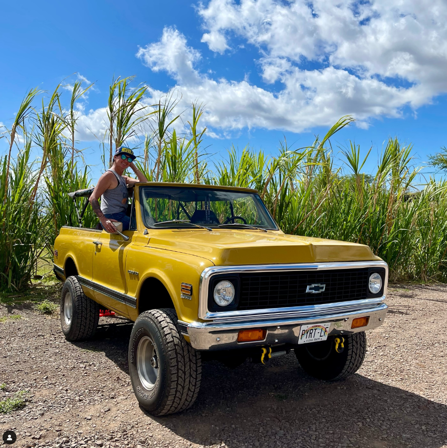 "Saturday cruisin’ upcountry to the cane fields with both of my babies.#upcountry#maui#k5blazer#72k5blazer#k5@engineered_vintageshackle brackets for the win 🏆"