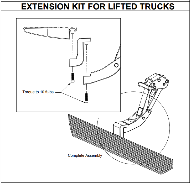 The Amp Step Extension Arm Kit lowers your PowerSteps to give you an additional 2" of drop for your lifted truck